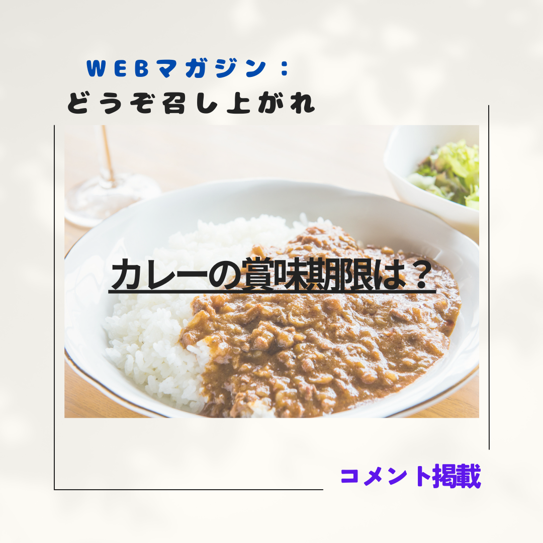 食系WEBマガジン「どうぞ召し上がれ」にて、「レトルトカレーの賞味期限切れはいつまで?3ヶ月・半年・1年は大丈夫?」の記事について監修&コメントしました。