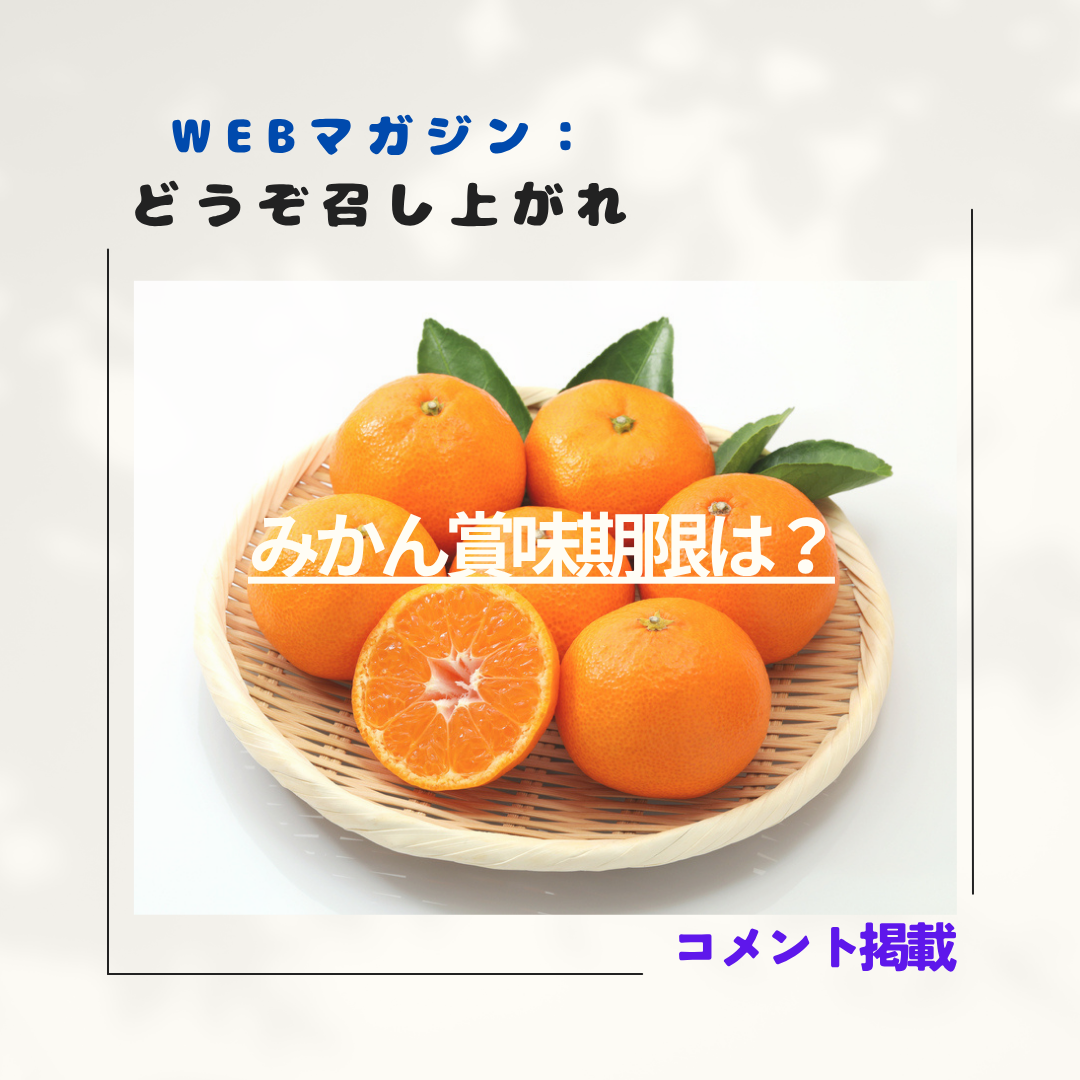 食系WEBマガジン「どうぞ召し上がれ」にて、「みかんの賞味期限は?常温・冷蔵庫だと?見分け方や日持ちする保存法も紹介!を監修&コメントしました。