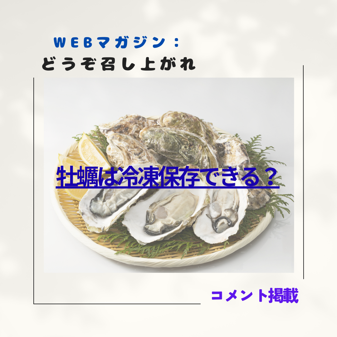 食系WEBマガジン「どうぞ召し上がれ」にて、「牡蠣の冷凍での保存方法を殻付き・むき身別に!下処理や解凍の仕方も紹介!」の記事について監修&コメントしました。