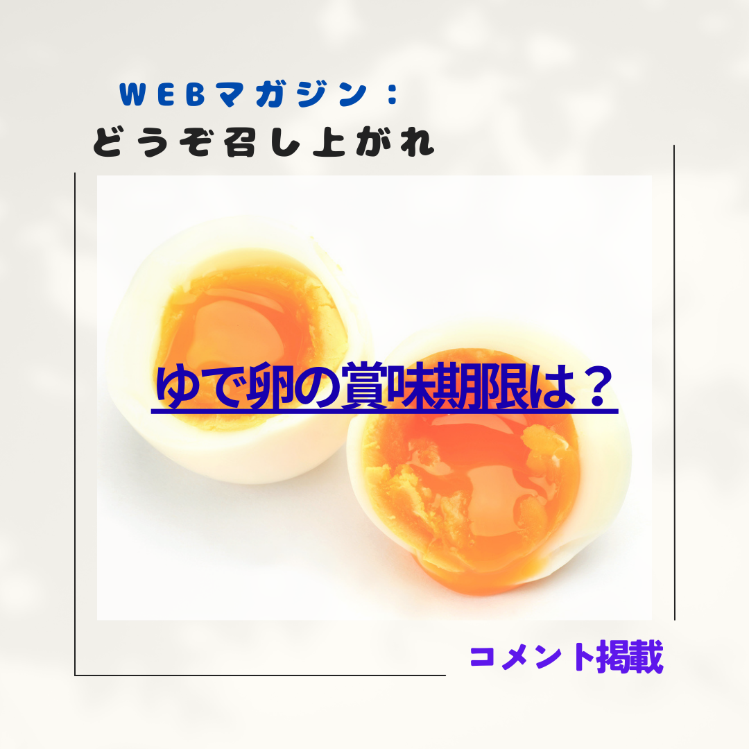 食系WEBマガジン「どうぞ召し上がれ」にて、「ゆで卵の賞味期限は?冷蔵庫で何日持つ?殻付き・半熟など場合別にも紹介!」の記事について監修&コメントしました。